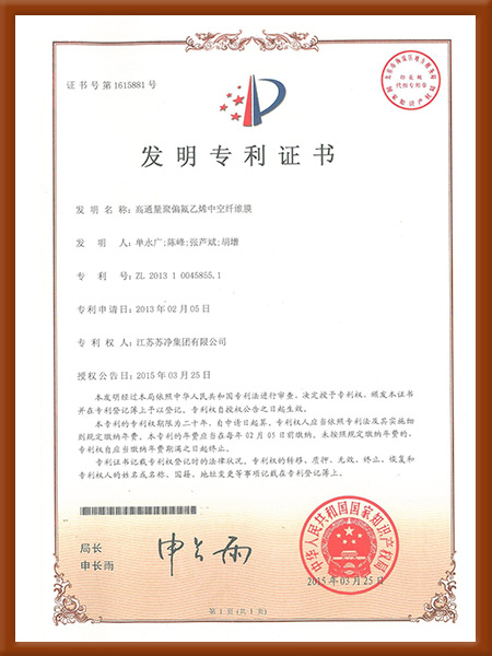 發明高通量聚偏氟乙烯中空纖維膜